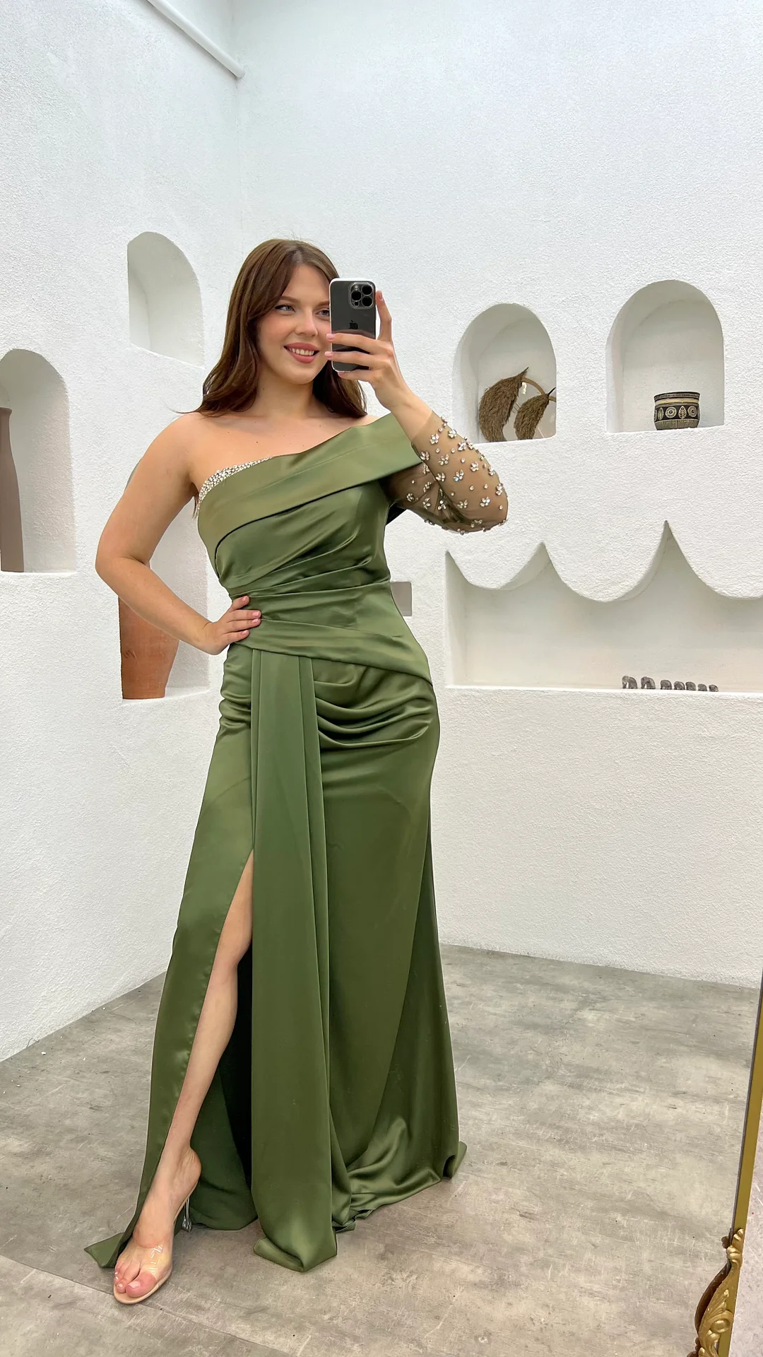 Khaki One Sleeve Satined Plus Satins